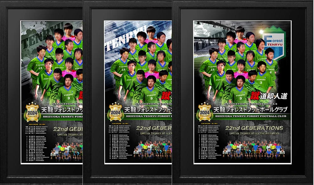 ご提供頂いた個人写真と集合写真をアレンジした2種類のデザインを特別に作成、プレゼント致します。学年単位などでの卒団や卒部記念などでデザインパネルを作成の場合は殆どのチーム様が対象になるかと思いますので是非ご利用ください。