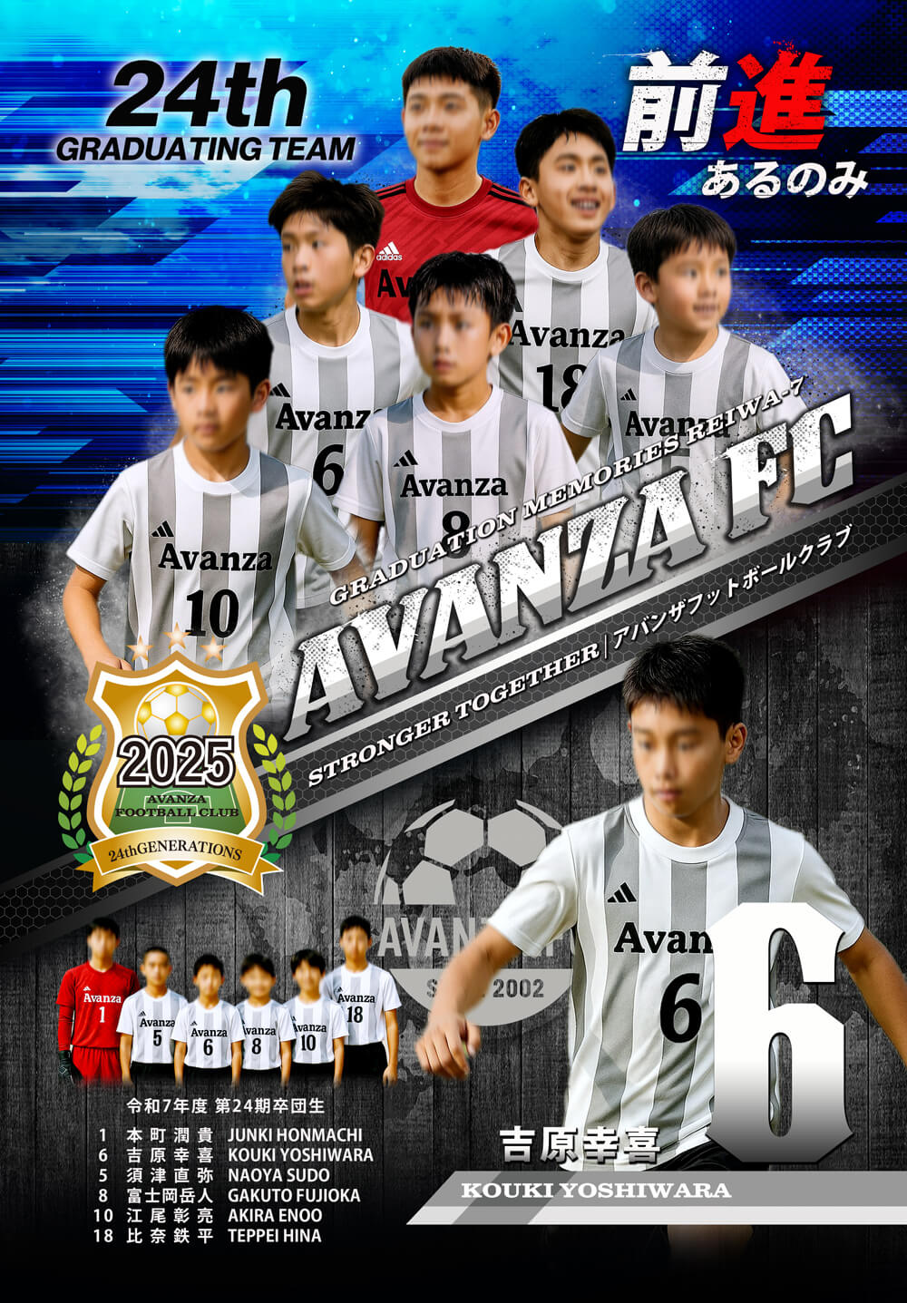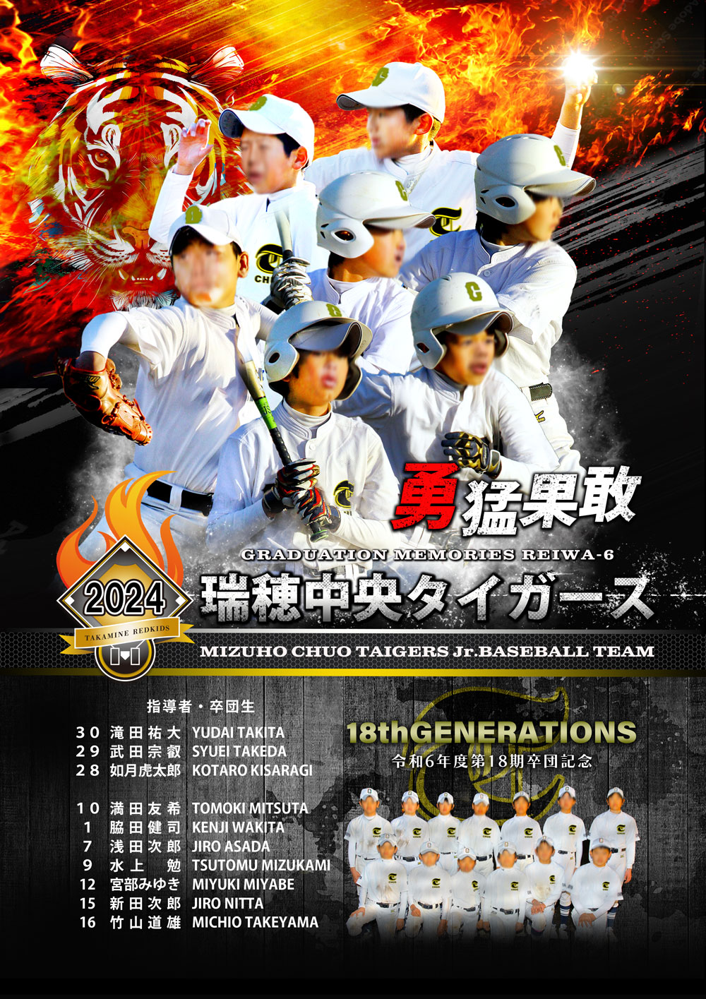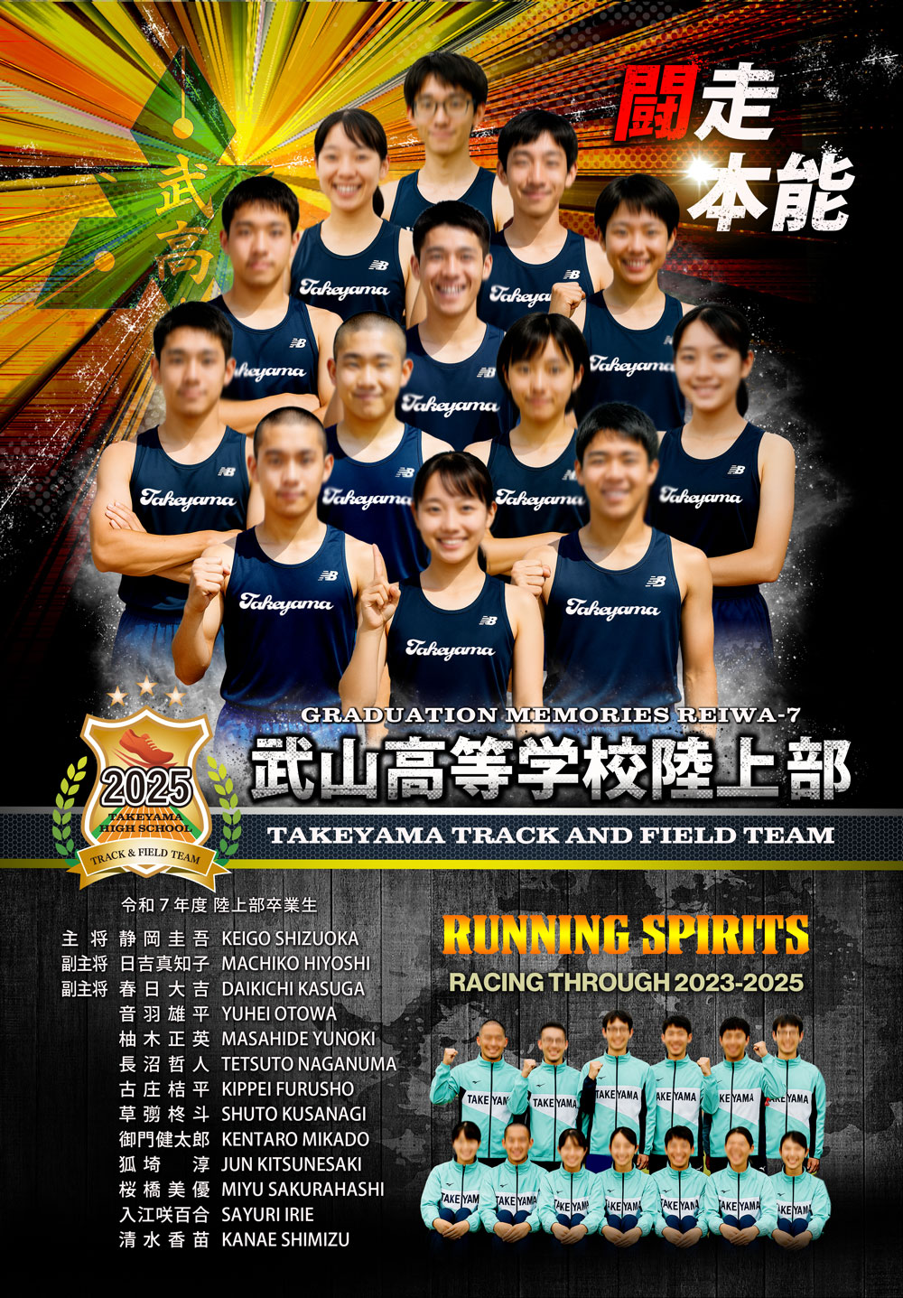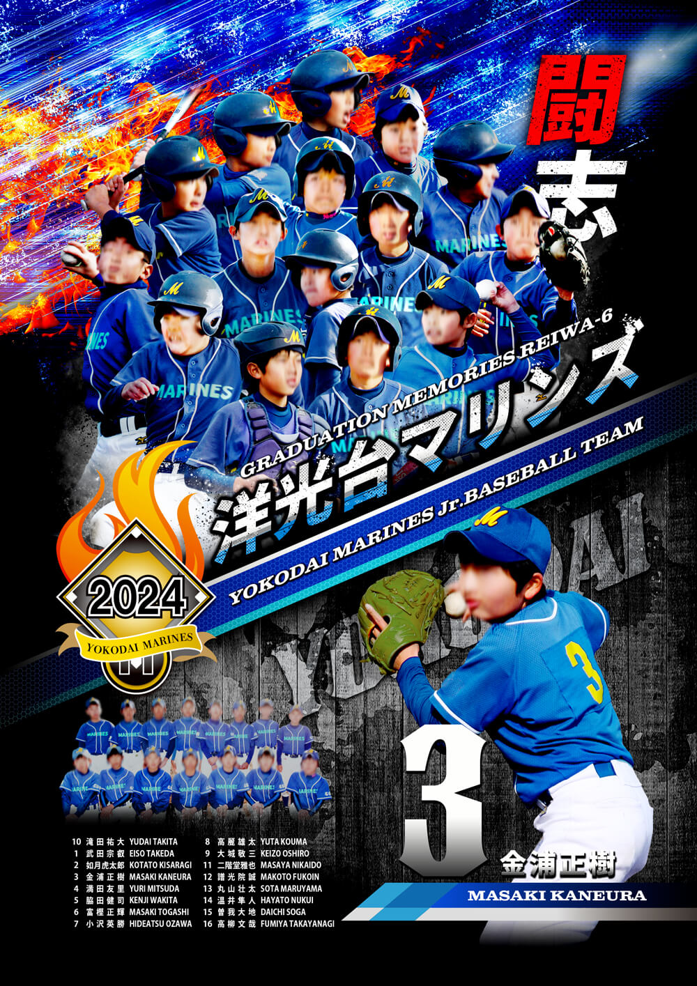 下部には選手名と全員共通の集合写真を1カットレイアウト致します。スペースに余裕があれば大会成績などをレイアウトすることも可能です。
