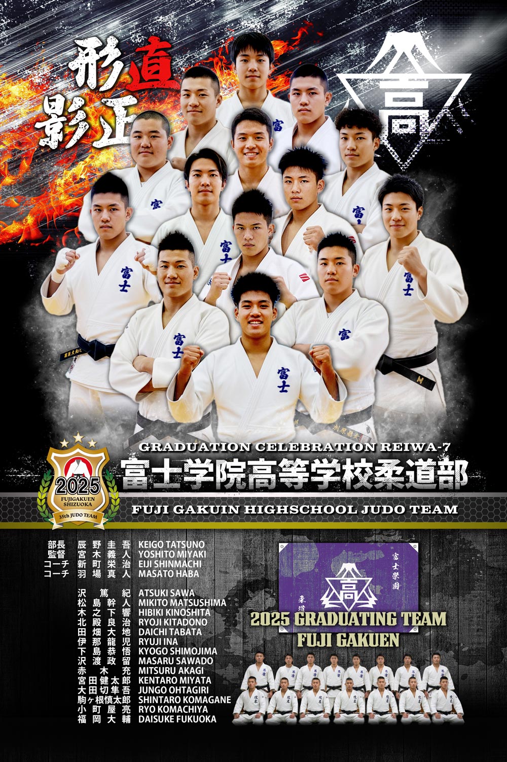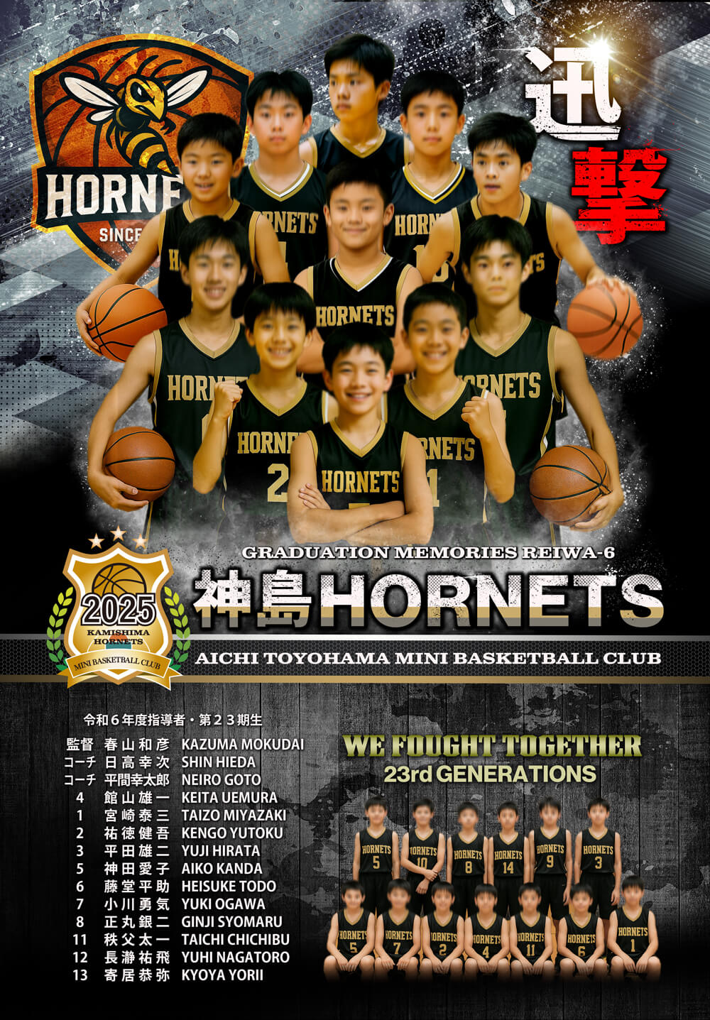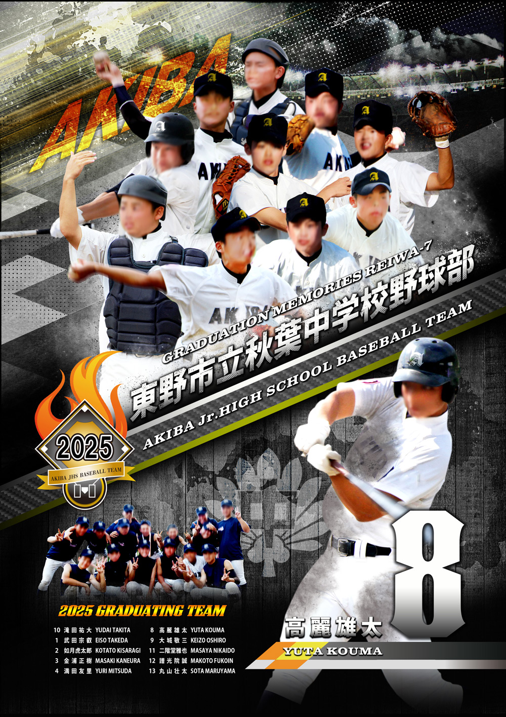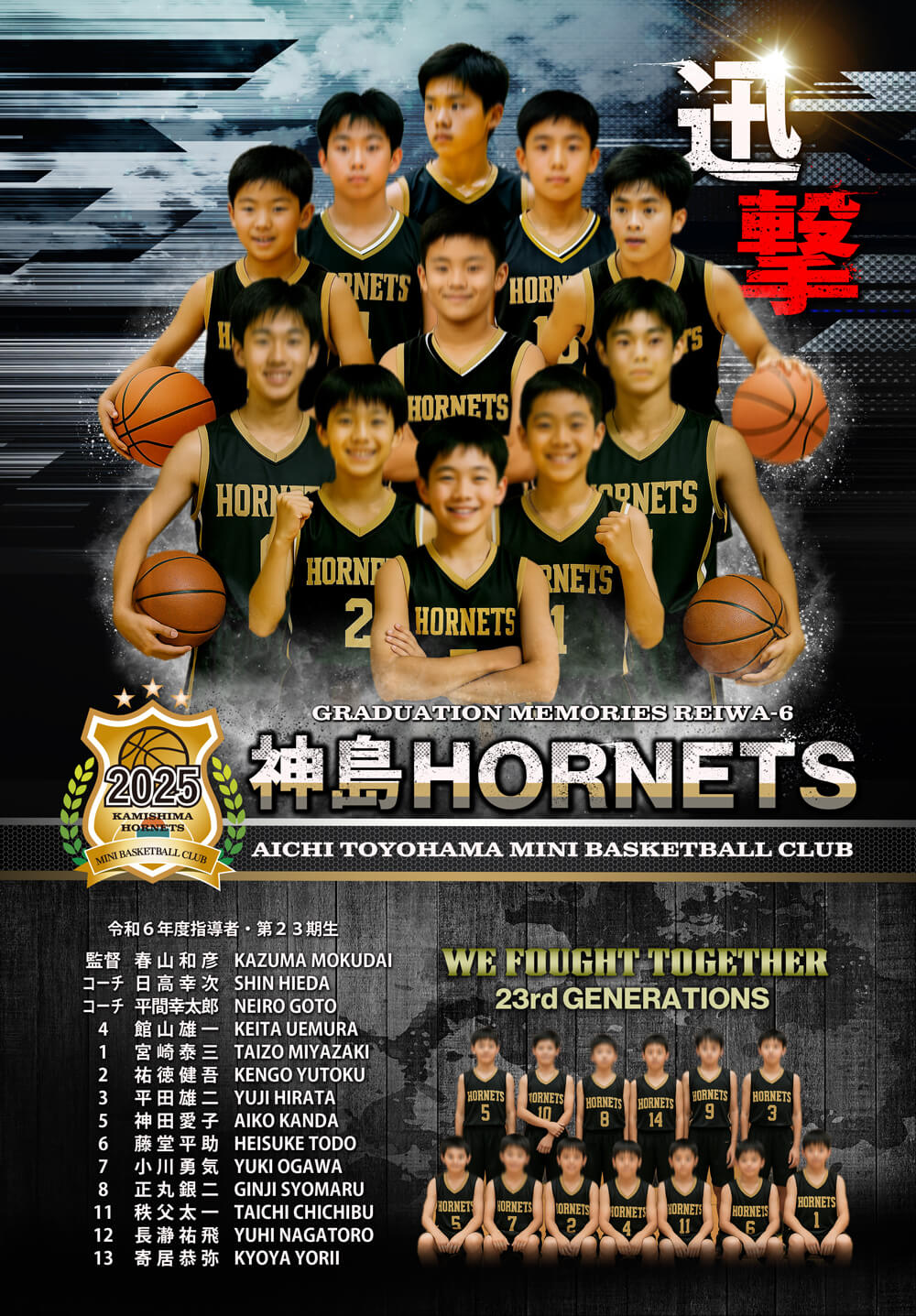 下部には選手名と全員共通の集合写真を1カットレイアウト致します。スペースに余裕があれば大会成績などをレイアウトすることも可能です。