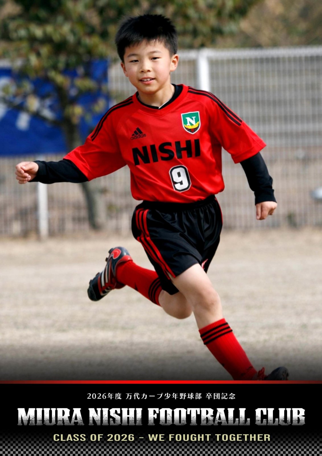 赤枠内は各選手の個人写真を1カットずつレイアウトした全員共通のデザインとなり、出来る限りキャプテンが中心か手前になる様にデザイン致します。