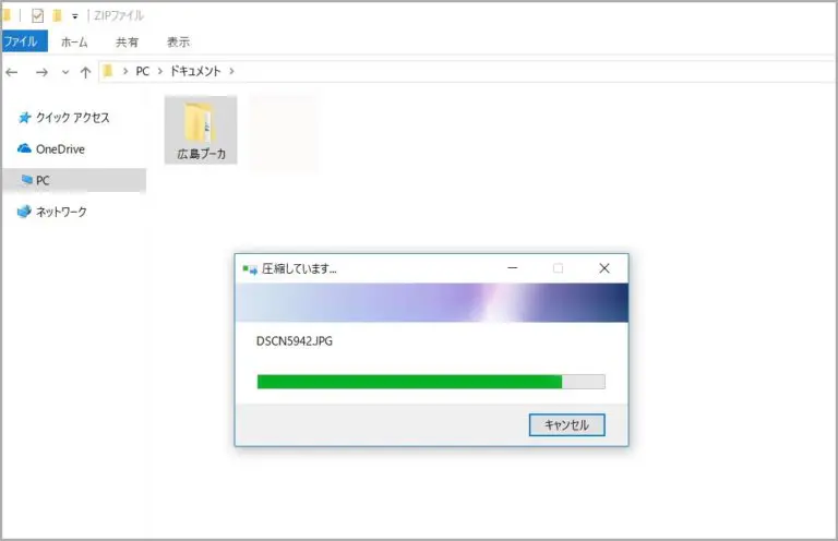 4.ZIPファイル化が終了すると、アイコンの異なる同名のファイルが生成されます。これがZIPファイル化されたデーターです。同一フォルダー内にZIPファイルが無い場合はデスクトップ等に作成されている場合があります。必ずどこかにあるので見当たらない場合は探してみてください。